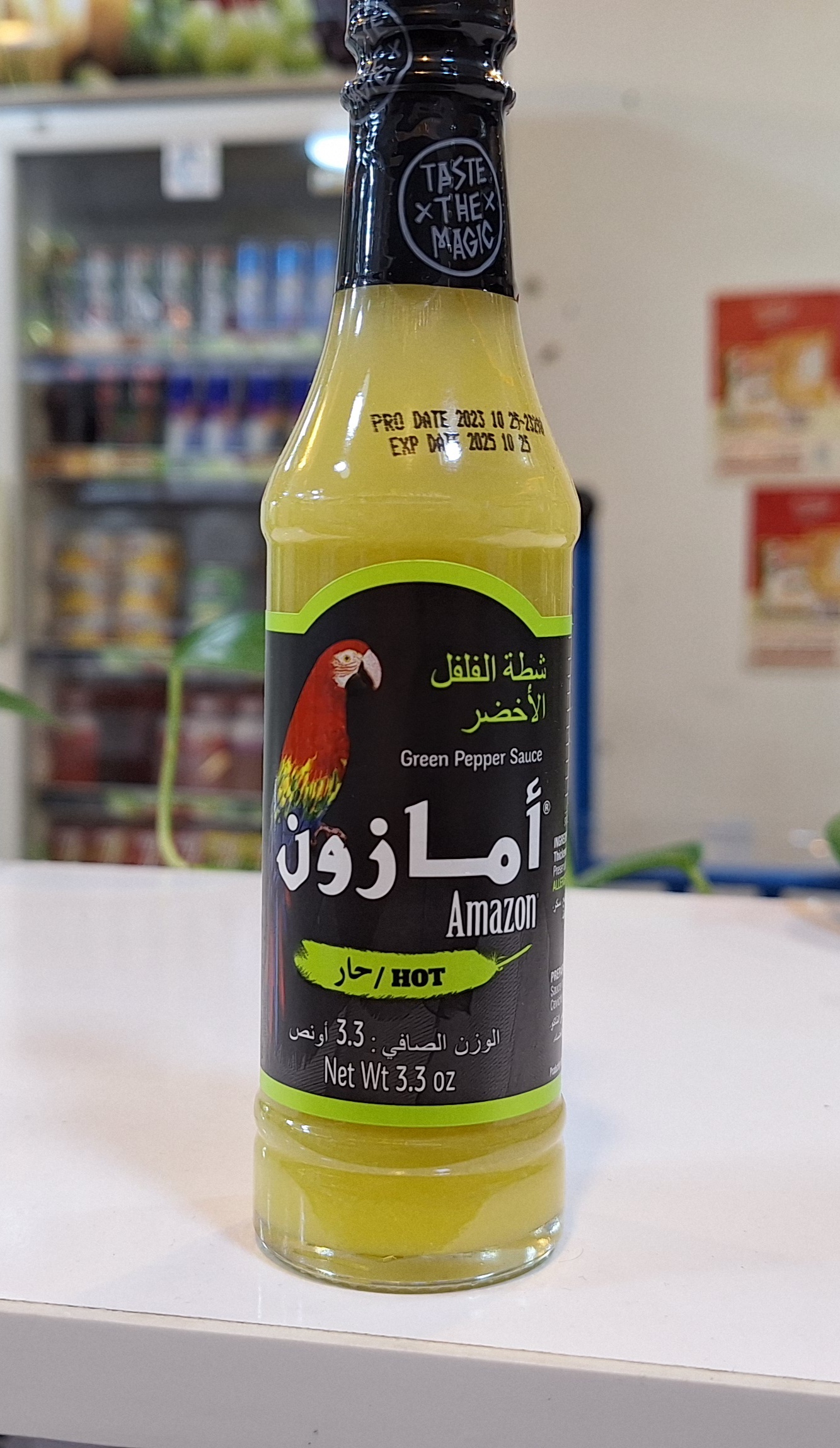این نوع از فلفل گوست که یکی از تندترین فلفلهاست، تهیه میشود و تندی بسیار بالایی دارد. - سس فلفل آمازون سبز: