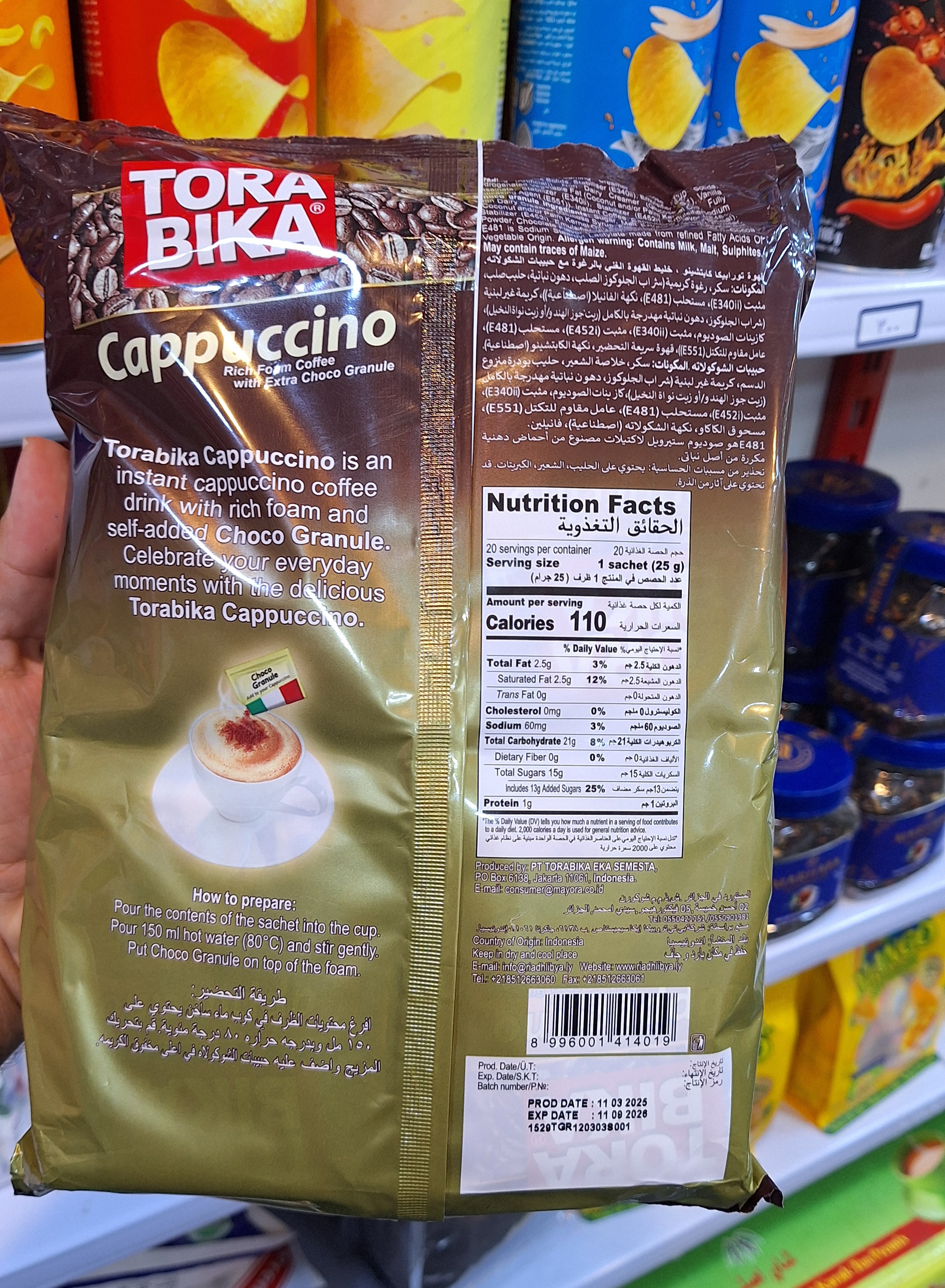 ✅️کاپوچینو تورابیکا (TORA BIKA Cappuccino)، یکی از پرطرفدارترین قهوههای فوری در بازار ایران و جهان است که با ترکیب حرفهای قهوه، شیر و شکلات، طعمی بینظیر، خامهای و دلنشین به شما هدیه میدهد. این محصول دارای گرانول شکلاتی اضافی است که به صورت جداگانه در هر ساشه قرار دارد