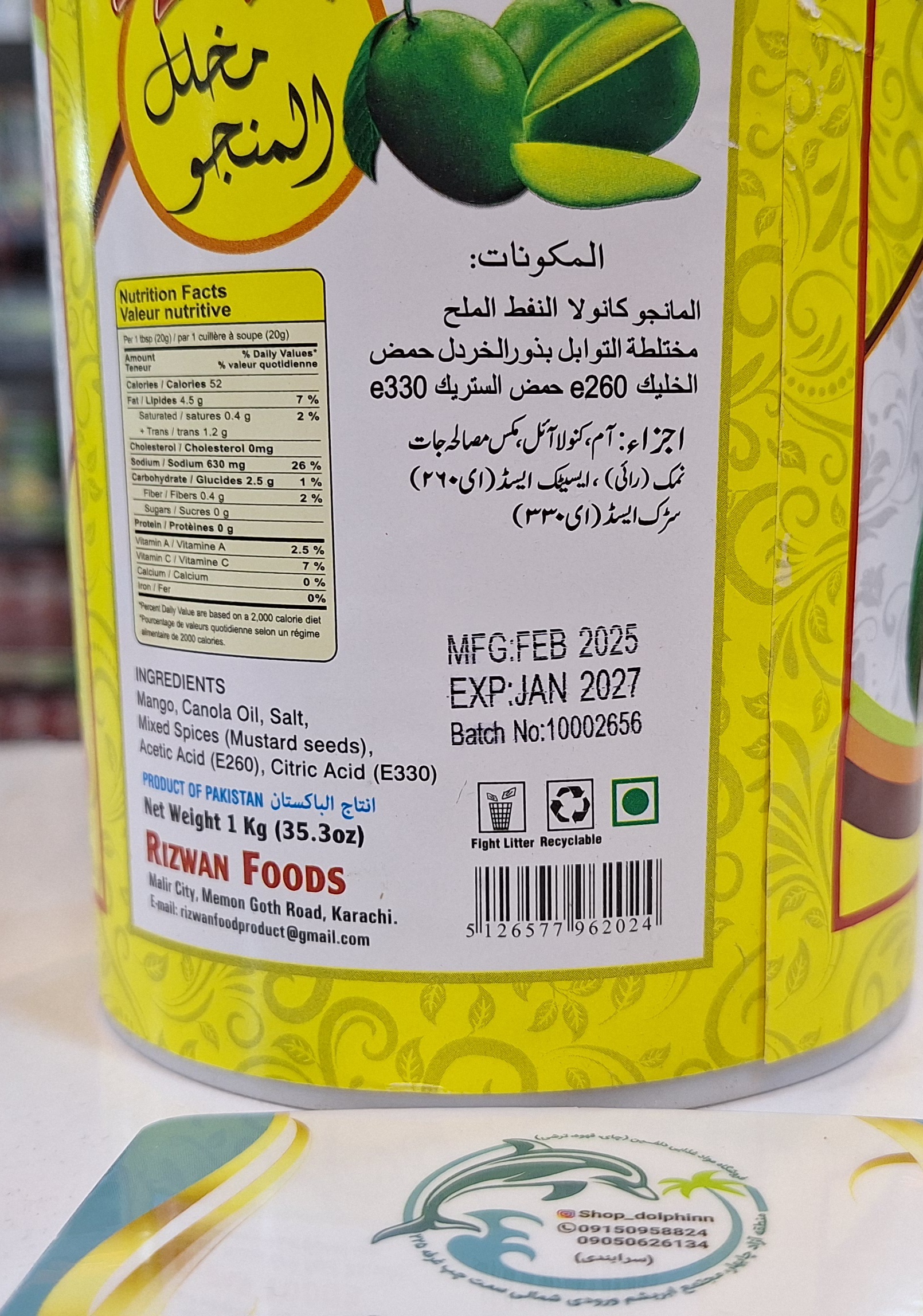 ترشی انبه خالص برند رضوان خالص حاوی روغن و ادویه مخصوص که در کشور پاکستان تهیه و شاپ دلفین این افتخار را دارد که این محصول با کیفیت و درجه یک را مستقیم از بندر چابهار در اختیار شما عزیزان قرار دهد.